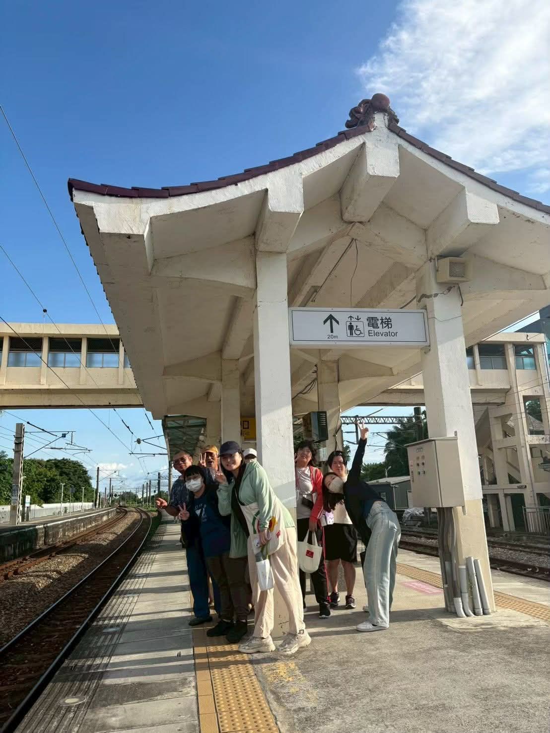 這次,我們選擇到南靖糖廠出遊,搭上火車🚂,沿途欣賞窗外的風景,也細數著彼此的喜悅與轉變。到站後,大家走進車站出口的長廊,那是一段像時光隧道般的天空走道。